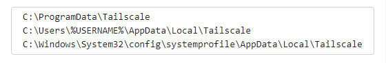When uninstalling you'll need to remove the following folders for a fresh install of Tailscale.